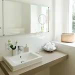Gli interni, che comprendono un patio e un salottino, sono caratterizzati da finestre insonorizzate, oltre che da una TV a schermo piatto con canali satellitari. Rilevatori di fumo fanno parte dei servizi di sicurezza in camera. Il bagno è dotato di una cabina doccia, un bagno alla francese e una vasca da bagno, nonché di asciugacapelli e asciugamani.